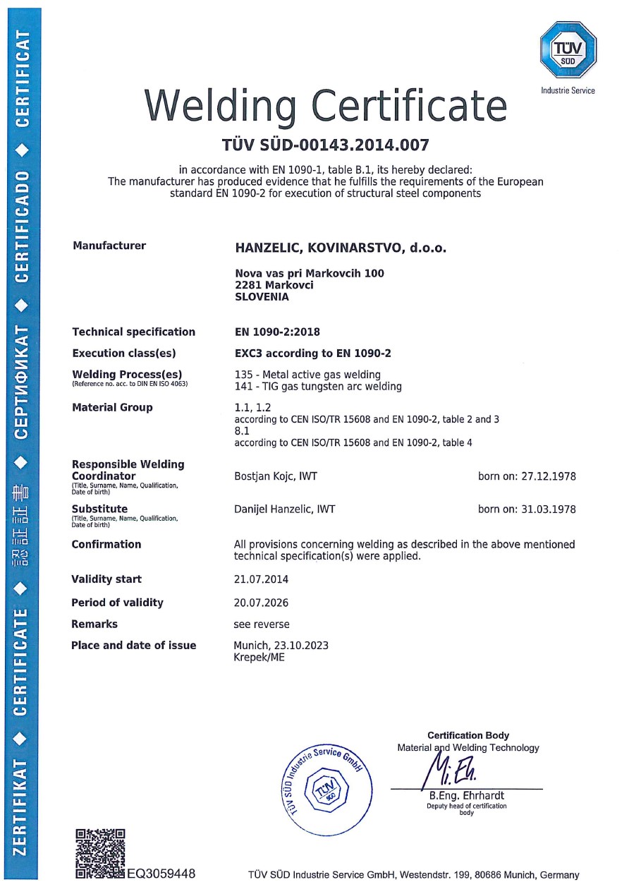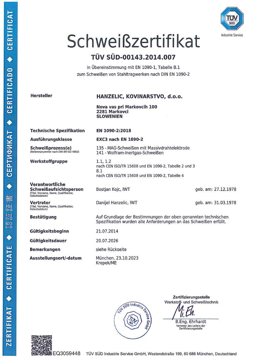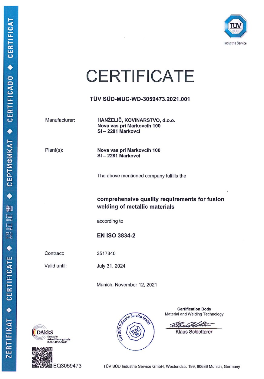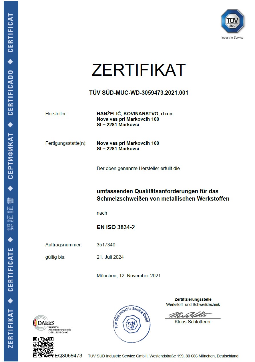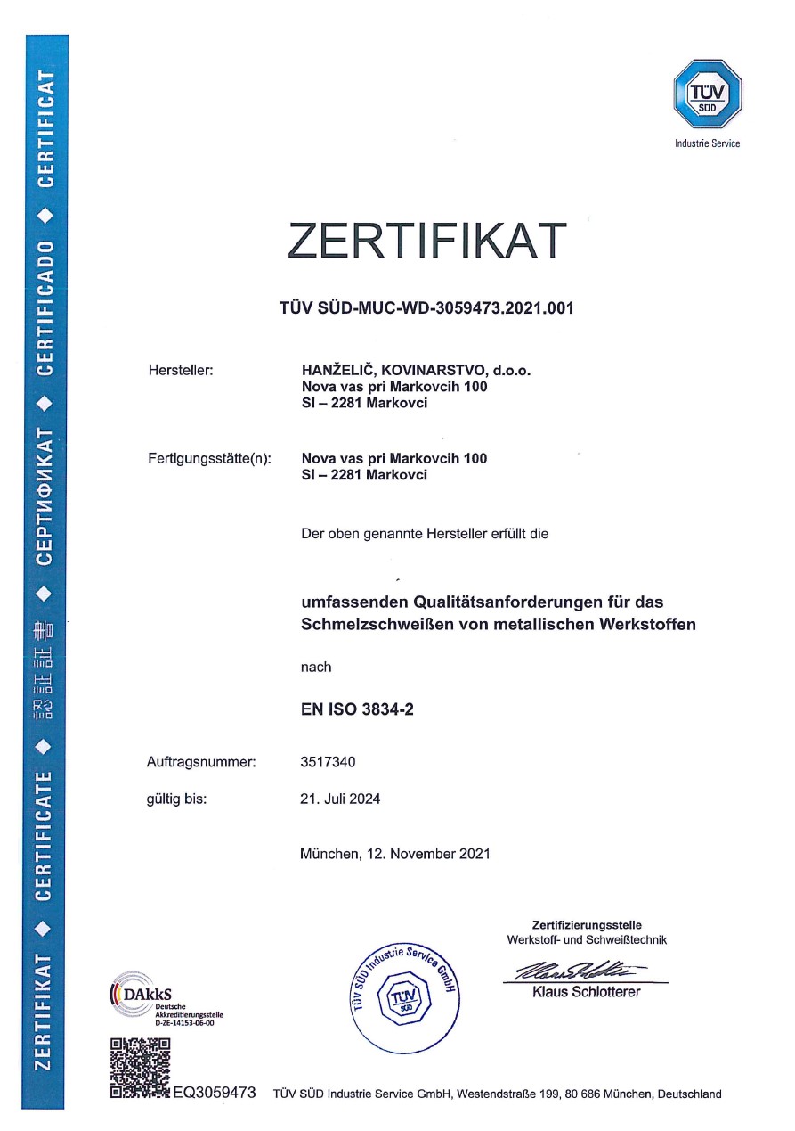 | Firmenname (lang): | HANŽELIČ, kovinarstvo, d.o.o. |